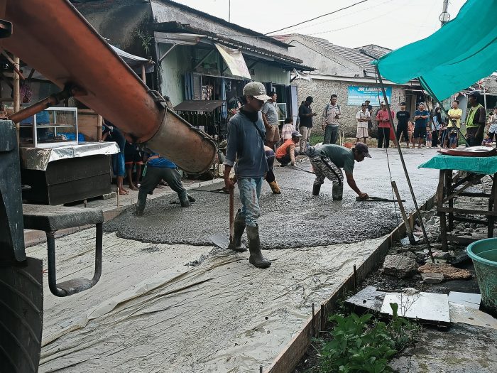 Pekerjaan proyek pembangunan jalan di Kampung Gabus Rawa RT004/006, Dusun 3, Desa Srijaya, Kecamatan Tambun Utara, Kabupaten Bekasi. [doc.klise]