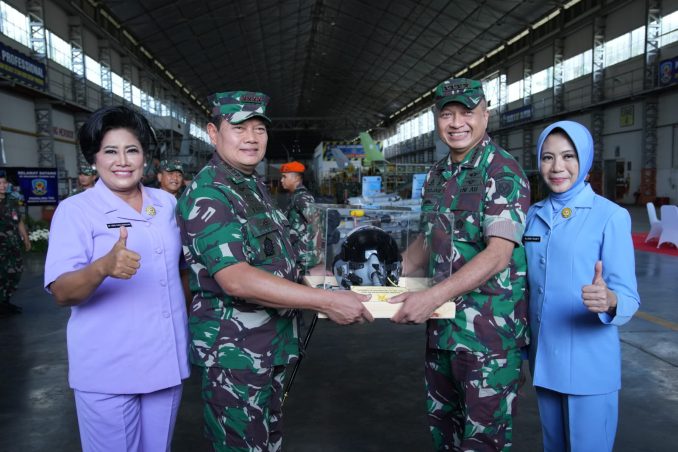 Didampingi langsung Kepala Staf Angkatan Udara Marsekal TNI Fadjar Prasetyo, S.E., M.P.P., CSFA, dan Ketua PIA Ardhya Garini Ny. Inong Fadjar Prasetyo, Panglima TNI dalam kunjungannya ke Lanud Iswahjudi berkesempatan melihat langsung pemeliharaan dan perawatan pesawat serta Program Falcon Star eMLU yang dilaksankan di Skatek 042 dan mendapat penjelasan langsung dari Danskatek 042 Letkol Tek Andi Sukmawan Wira A., ST.